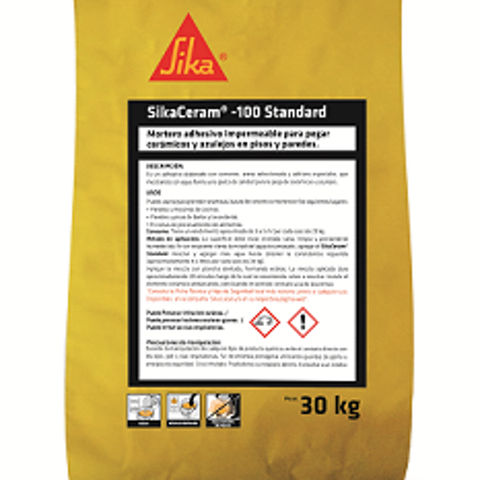 SikaCeram-100 Standard es un adhesivo en polvo de un componente, que contiene polímeros especiales y que tiene propiedades impermeables, especialmente indicado para la colocación de piezas cerámicas y azulejos de alta absorción. SikaCeram-100 Standard se prepara agregando el polvo al agua y no requiere ningún material adicional.